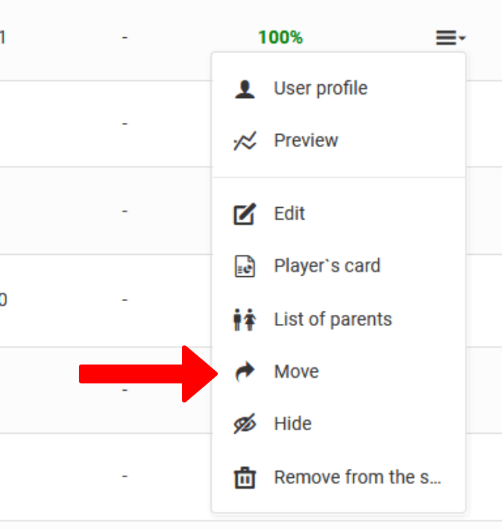 Pamatujte však, že data, která jsou neoddělitelně spojena s jeho předchozím týmem, tj. docházka, statistiky zápasů, výsledky tréninků nebo příspěvky, nebudou s hráčem převedeny do nového týmu.